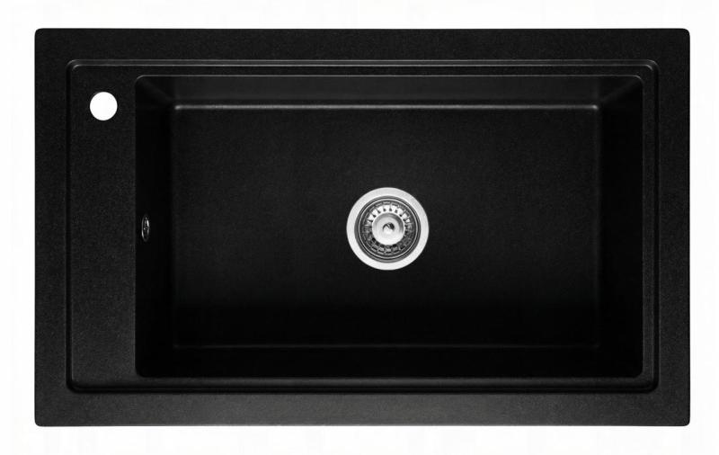 Graniteland Magra Granite Black Surface Mount Sink 686 x 427 mm with tap hole bench and Stainless Steel Plug 1208970616