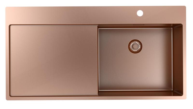 Pure.Sink Exclusivo Copper sink with drainer 100x52 cm Tapwing right PEX47100RT-62